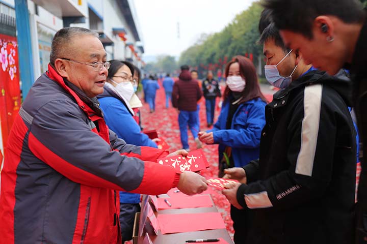 員工們簽到領(lǐng)取開工紅包