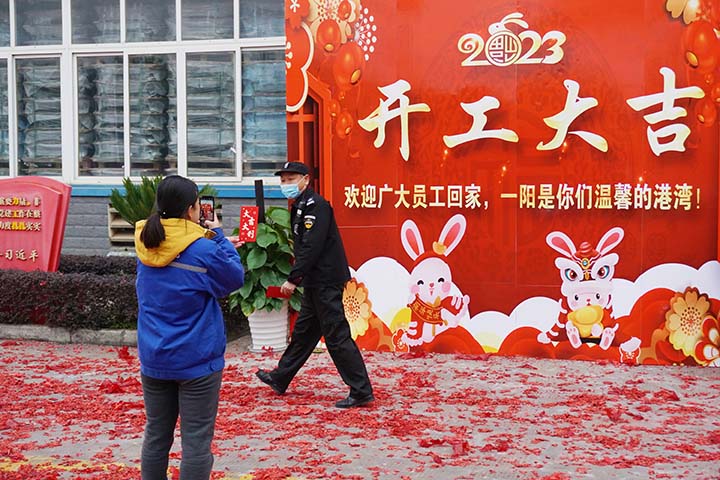 正月初七上午,柳州一陽科技股份有限公司舉行新年開工儀式,公司管理層在道路兩側(cè)整齊列隊歡迎員工“回家”,向員工致以最熱烈的新春祝福和返崗歡迎。