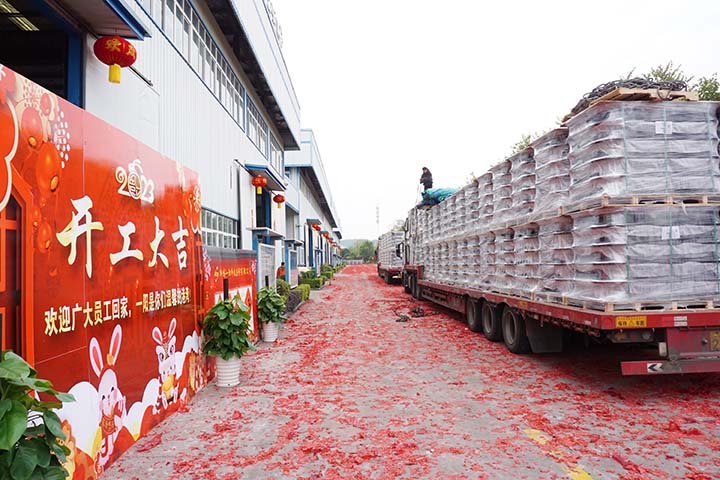人勤春來早,奮進正當時!開工儀式當日上午,滿載輪轂的貨車接二連三的駛出。開工即發(fā)貨,寓意著柳州一陽在新一年大吉大利、紅紅火火!
